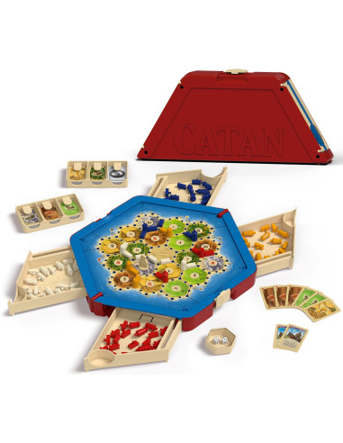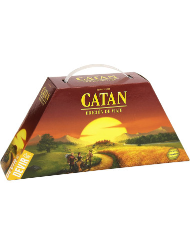En esta versión "Viaje" del juego, los terrenos no son hexágonos individuales, sino seis piezas de material que se pueden reorganizar de diferentes maneras para cambiar el tablero de juego. Las piezas del jugador y las tarjetas de recursos caben en los cajones del lado del tablero, que se dobla en un trapecio.