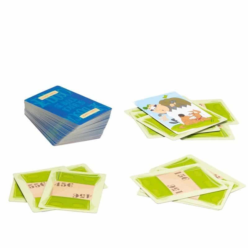 En Ladrón Torpón debes conseguir montones de dinero que sumen 100 €. Usa la carta de ladrón para robar montones de dinero. Pero cuidado no te lo impidan con la carta de cárcel; todo está en juego. ¡El jugador con más dinero, gana!